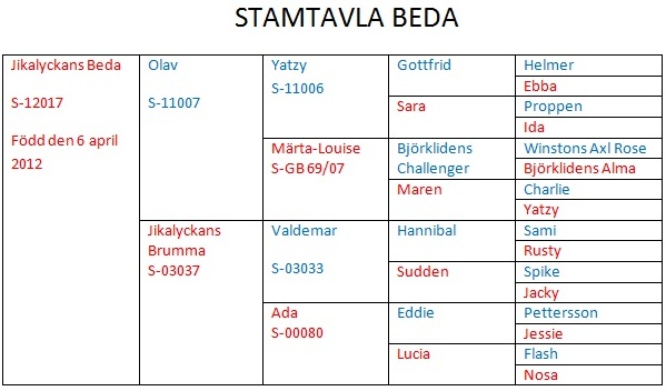 Hon är dotter till Brumma, halvsyster till Sally och är född den 6 april 2012.